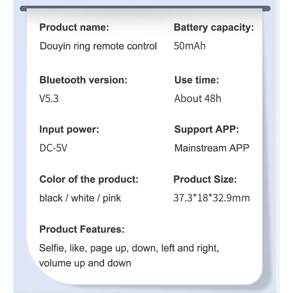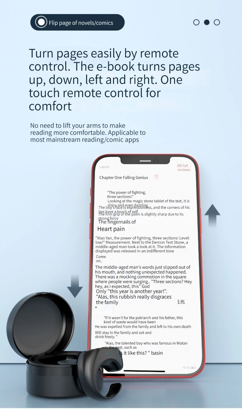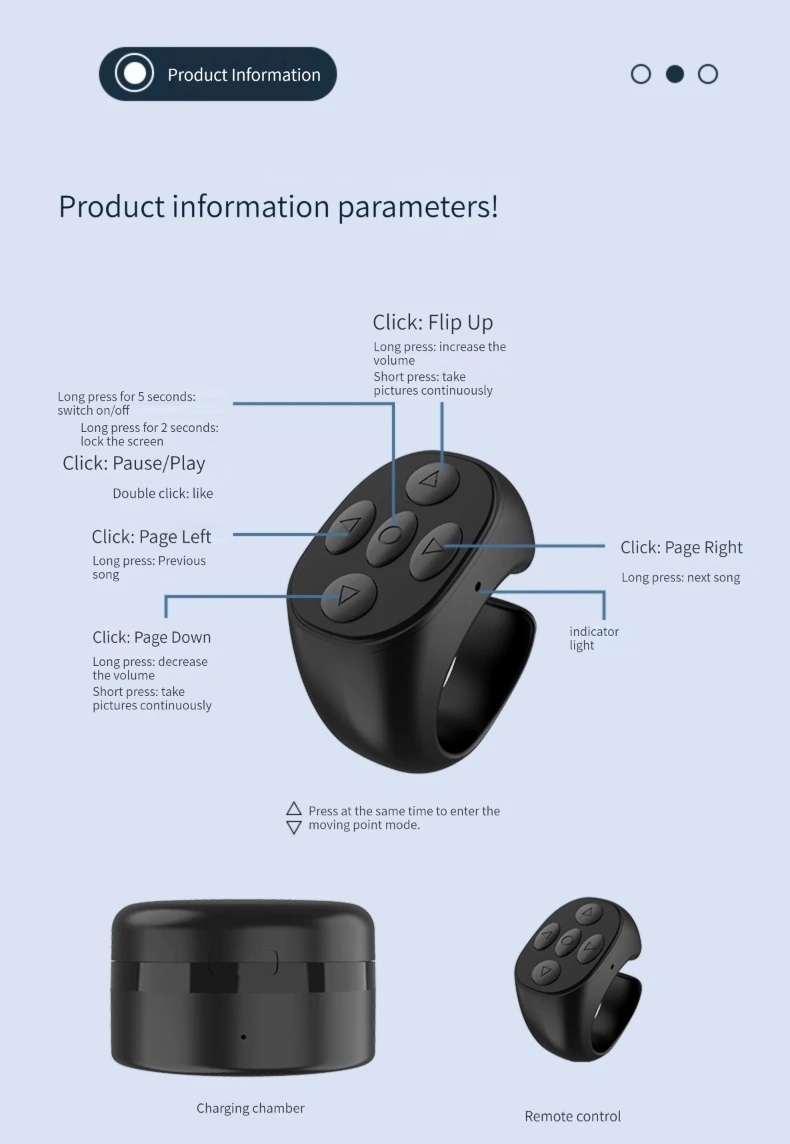 5. Smart Wearable Design: The ergonomic ring design allows you to wear it comfortably, it is a perfect gift for birthdays, Valentine's Day, etc. Compatible with mainstream APPs on the market (short videos, cameras, novels, etc.), portable and lightweight, it is the best partner for lazy people.