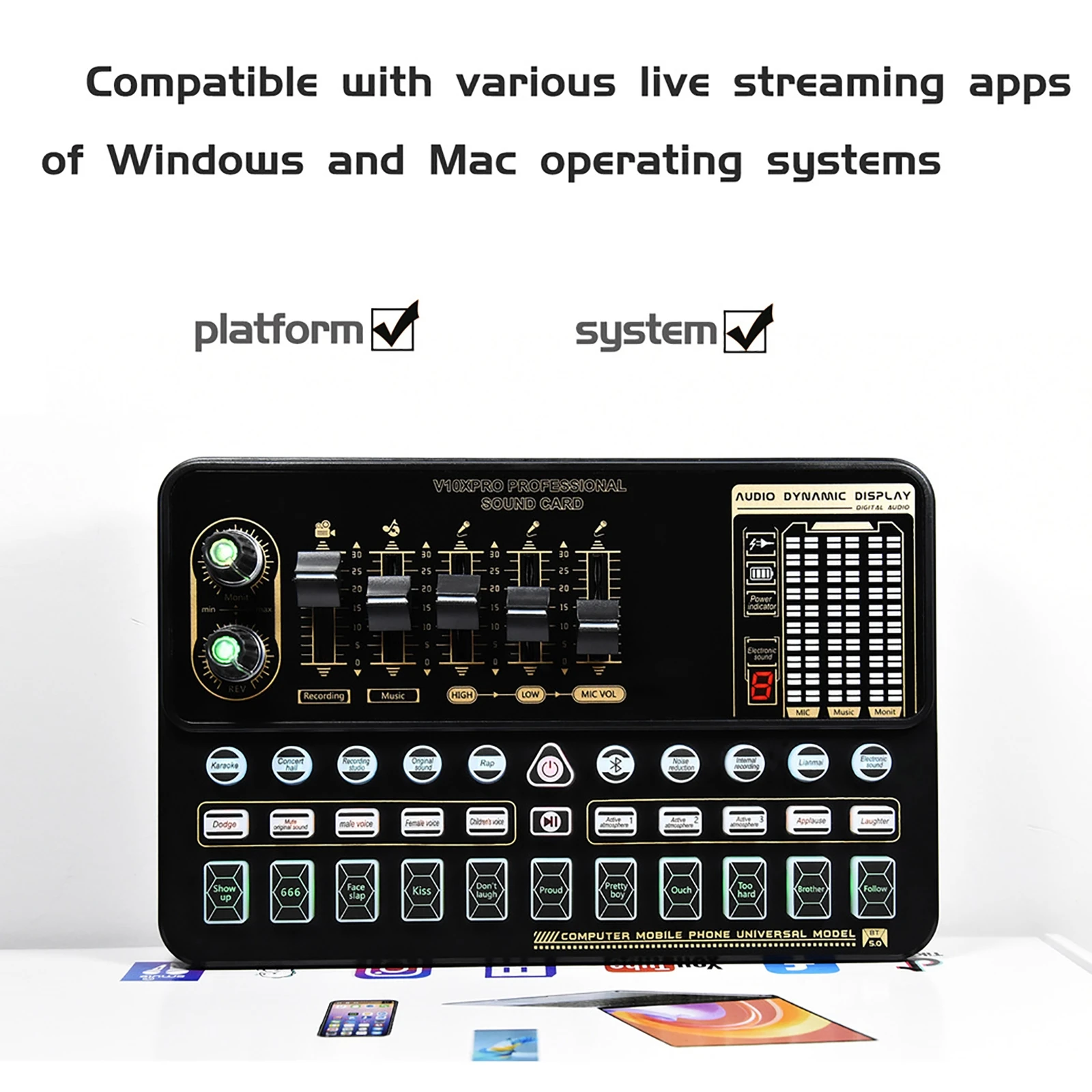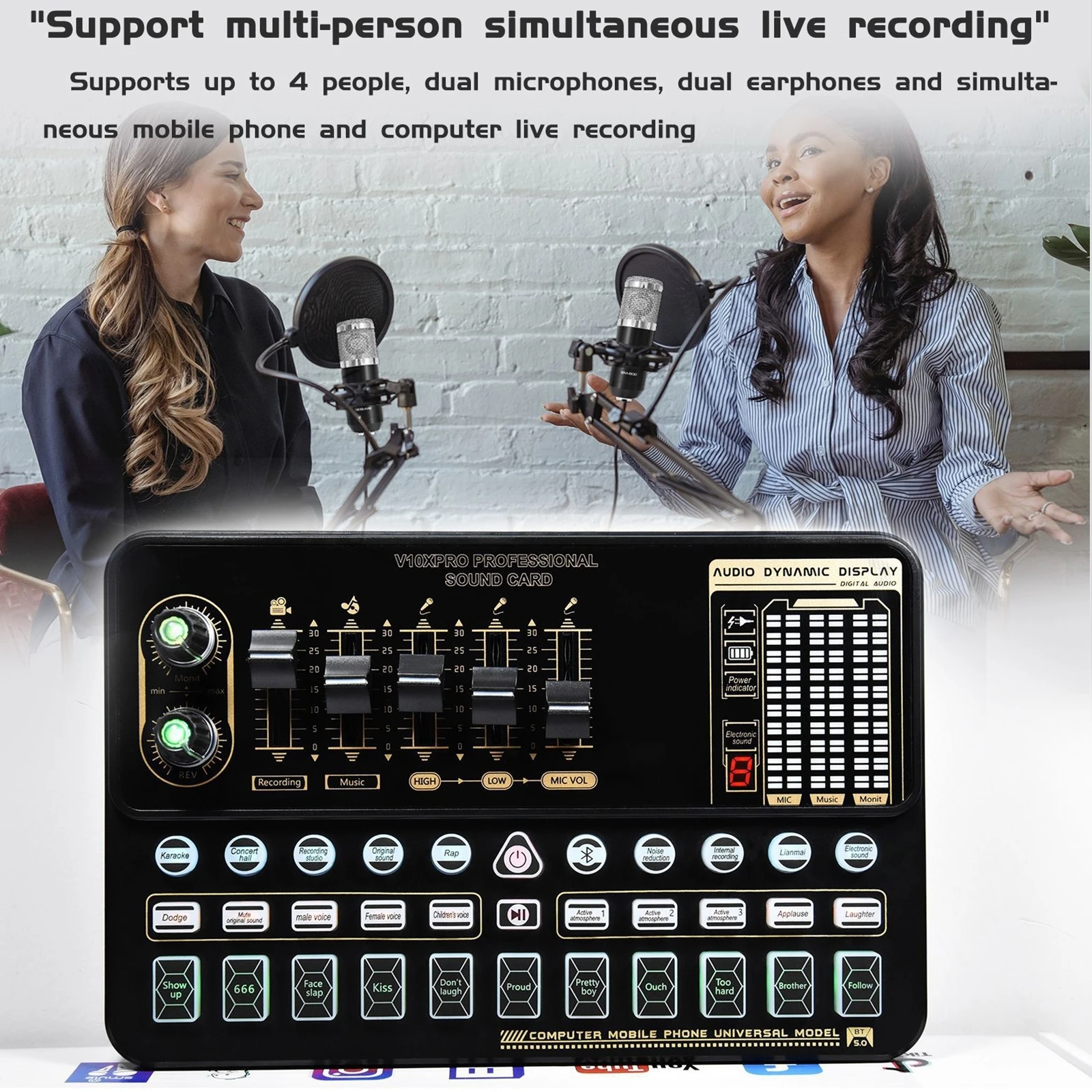 Microphone Sound Card Bm800 V10PRO Professional Wireless Webcast Personal Streamer Living Singing Gaming for PC Youtube TikTok